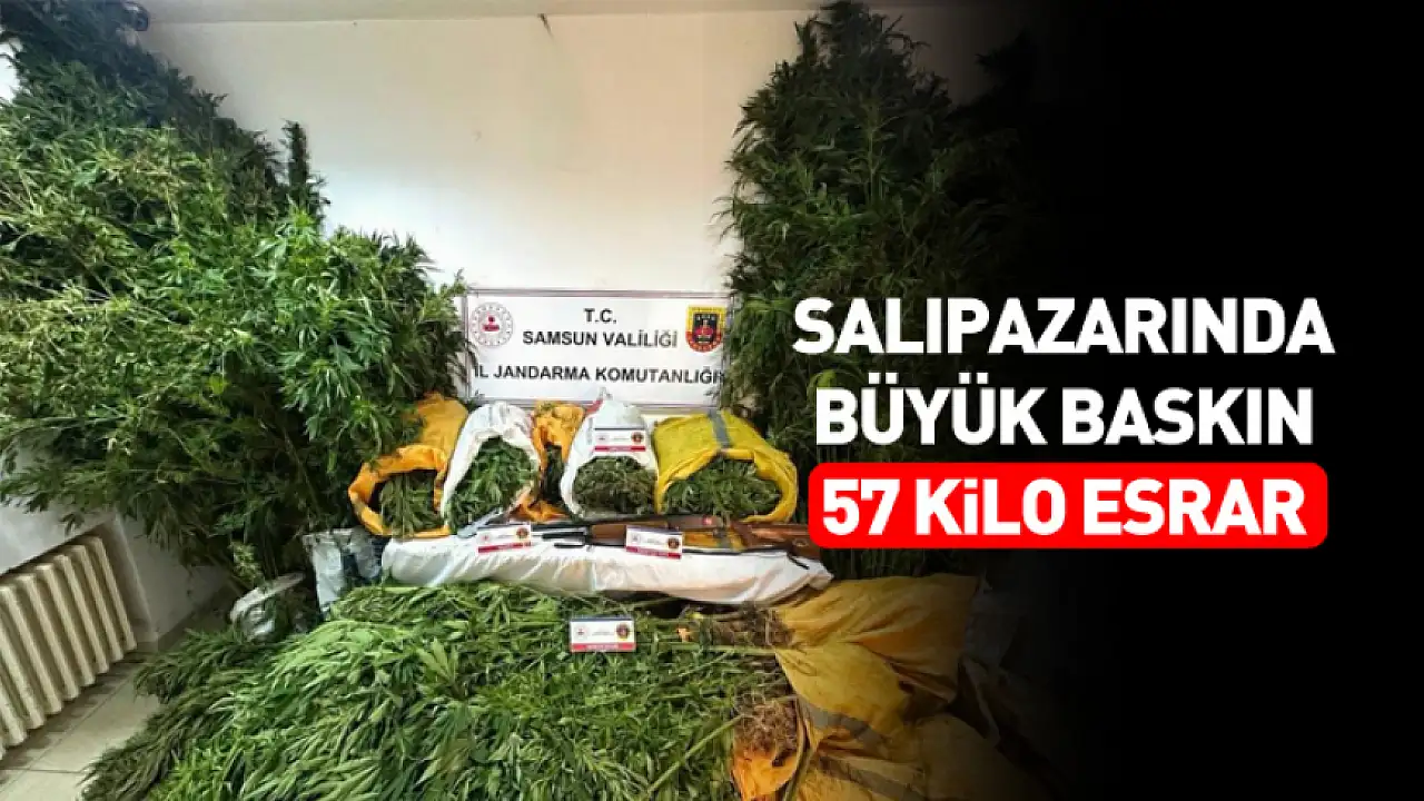 Samsun'un Salıpazarı ilçesinde jandarma ekiplerinin düzenlediği uyuşturucu operasyonunda 57 kilo 955 gram kubar esrar ve yüzlerce kök kenevir ele geçirildi. Operasyonda gözaltına alınan iki şüpheli tutuklanarak cezaevine gönderildi.