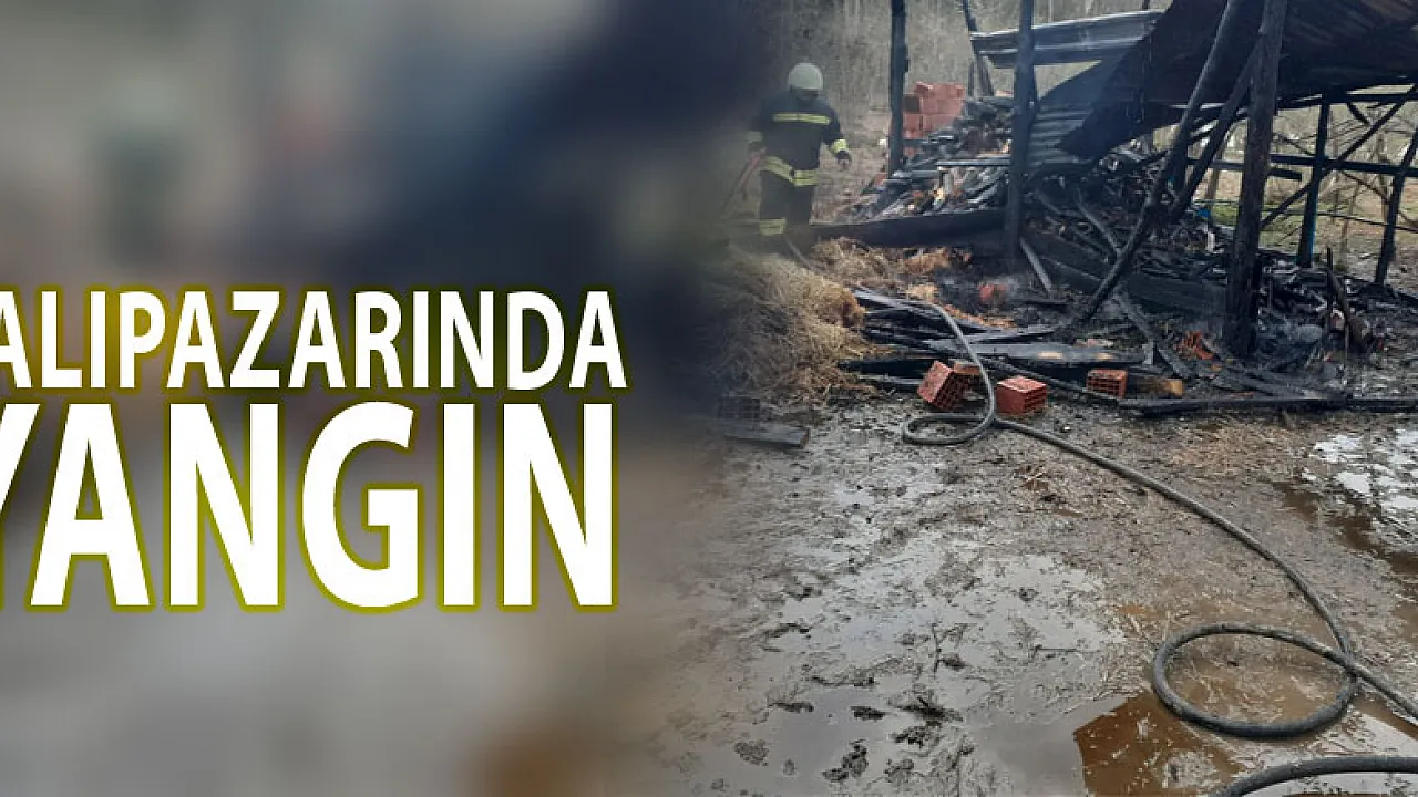 Samsun'un Salıpazarı İlçesinde çıkan yangında odunluk ve samanlık yandı.