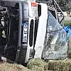 Manisa'nın Salihli ilçesinde saman yüklü kamyonetin refüje çarpıp takla atması sonucu meydana gelen kazada 1 kişi yaralandı. Kazada kamyonette bulunan saman balyaları ise yola saçıldı.