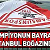 Şampiyon Samsunspor'un bayrağı İstanbul Boğazı'na asıldı