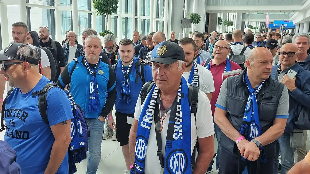 2023 UEFA Şampiyonlar Ligi finalinde İngiliz ekibi Manchester City ile İtalyan temsilcisi Inter, yarın saat 22.00'de Atatürk Olimpiyat Stadı'nda karşı karşıya gelecek. Bu zorlu mücadele öncesi her iki takım taraftarları, İstanbul'a akın etmeye başladı. Dün akşam saatlerinde bir grup İngiliz taraftar, dev final için İstanbul Havalimanı'na gelmişti. Bugün de saat 12.30 sıralarında İtalya'nın Milano şehrinden düzenlenen charter seferle gelen yüzlerce Inter taraftarı, uçaktan iner inmez tezahüratlara başladı ve marşlarla takımlarına destek verdi.