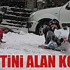Samsun'da yağan karı mutlulukla karşılayan çocuklar ve vatandaşlar, poşet ve leğenlerle kaydı.