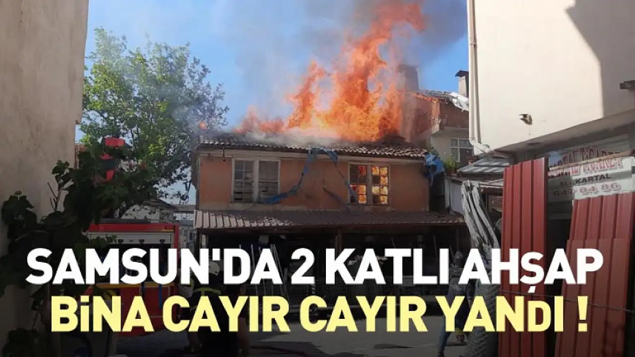 Samsun'da 2 katlı ahşap bina cayır cayır yandı !
