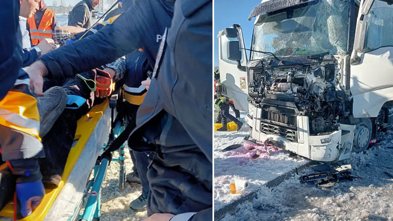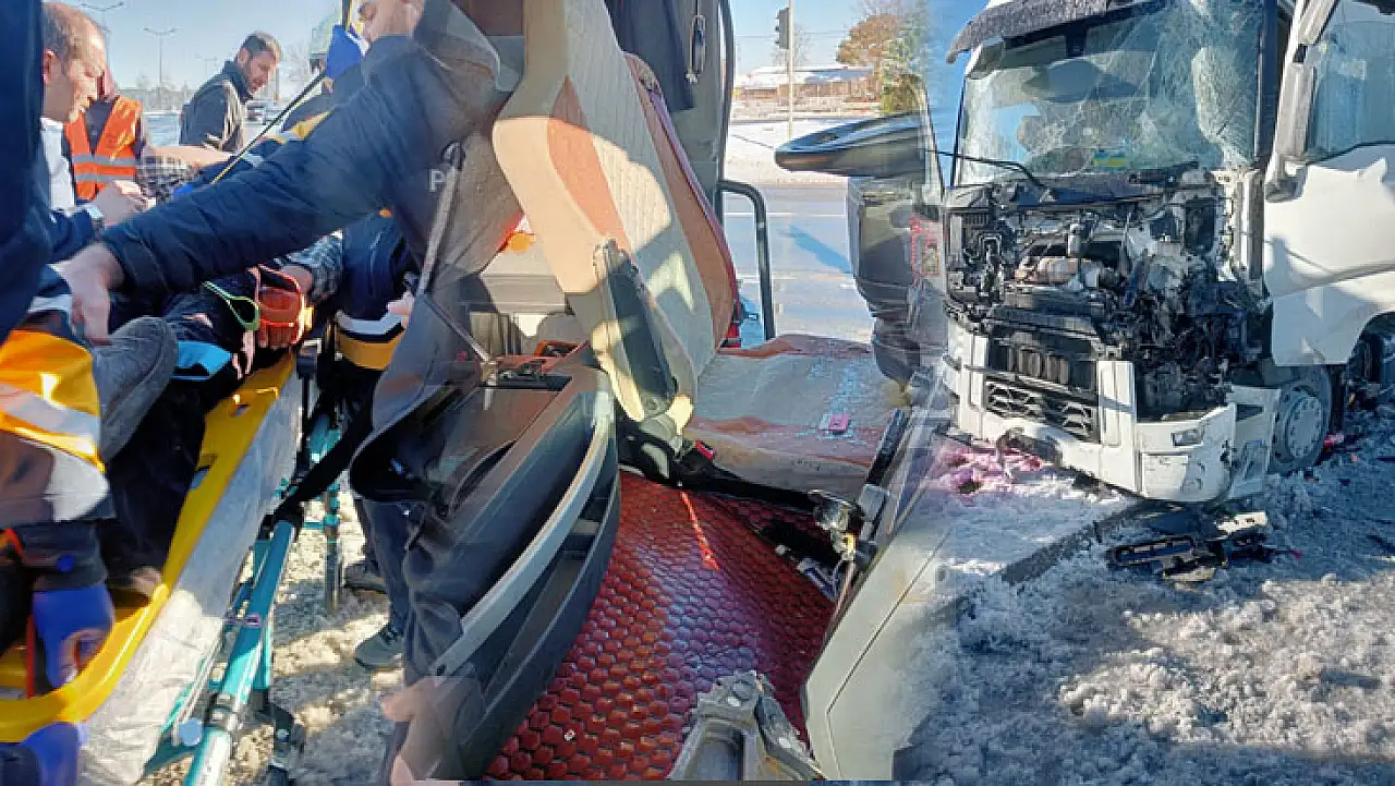 İtfaiye ekiplerince sıkıştığı yerden çıkarılan tır sürücüsü Mehmet Afrin, sağlık ekiplerince çevredeki bir hastaneye kaldırıldı.