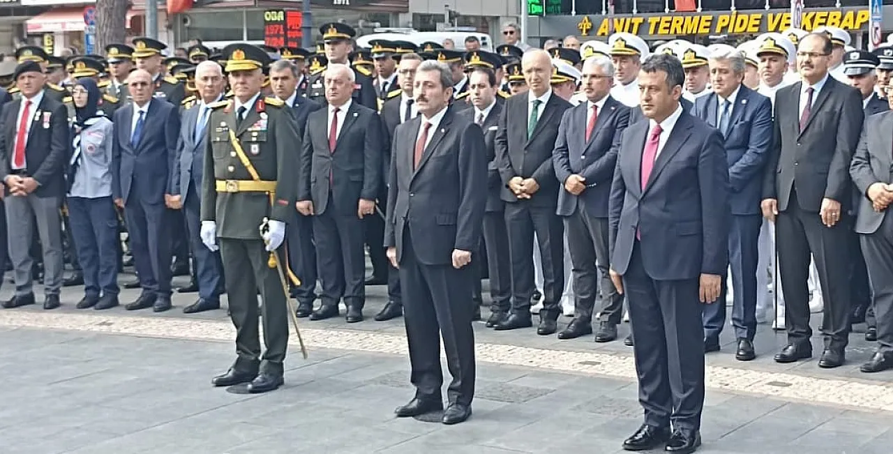 Samsun Valiliği, Garnizon Komutanlığı ve Samsun Büyükşehir Belediyesi’nin çelenk sunmasıyla başlayan tören; saygı duruşu, İstiklal Marşı’nın okunması ve Türk bayrağının göndere çekilmesiyle devam etti.