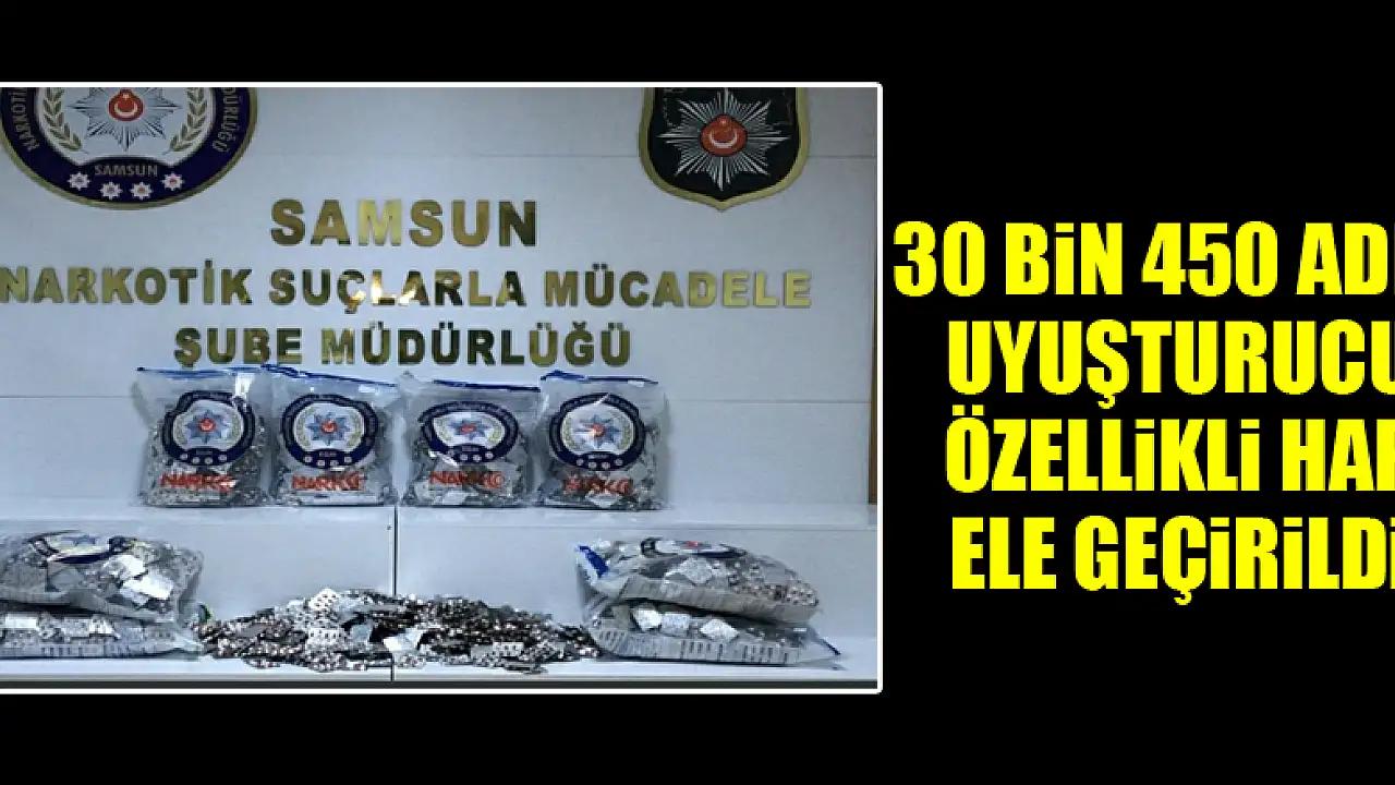 Samsun'da 30 bin 450 adet uyuşturucu özellikli hap ele geçirildi.