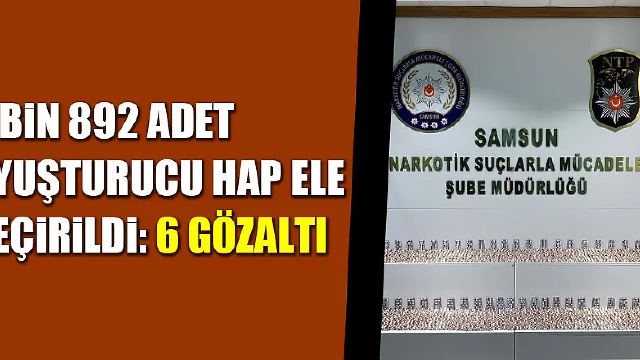 Samsun'da narkotik polisi tarafından düzenlenen uyuşturucu operasyonunda 6 bin 892 adet uyuşturucu sentetik ecza ele geçirilirken, olayla ilgili 6 kişi gözaltına alındı.