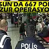667 polis ve bekçinin katılımıyla 18 ayrı noktada düzenlenen huzur operasyonunda 4 bin 675 kişi, 748 araç, 183 iş yeri kontrol edildi.Yapılan aramalarda 7 iş yerine sigara içirtmekten idari yaptırım uygulandı, 1 iş yerine açıktan alkol almaktan veya aldırmaktan gerekli tutanak tanzim edildi, 1 iş yerine konsomatris çalıştırmaktan işlem yapıldı, -8 şahıstan amaç dışı bıçak elde edildi ve Kabahatler Kanununa göre idari yaptırım uygulanmış, alkol veya uyuşturucu madde tesiri altında araç kullanmaktan,