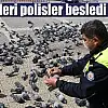 Samsun'da sokağa çıkma yasağından dolayı aç kalan güvercinleri polisler besledi.