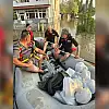 Samsun'un Terme ilçesinde İl Afet ve Acil Durum Müdürlüğü (AFAD) ile Türk Kızılay ekipleri, aşırı yağış nedeniyle evlerinin etrafını su basan vatandaşlara botla erzak dağıttı.