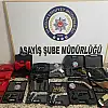 Aramada, 4 tabanca, 6 kurusıkı tabanca, namlu, dipçik, 5 şarjör, 102 fişek, kavanoz içinde bir miktar uyuşturucu ele geçirildi.