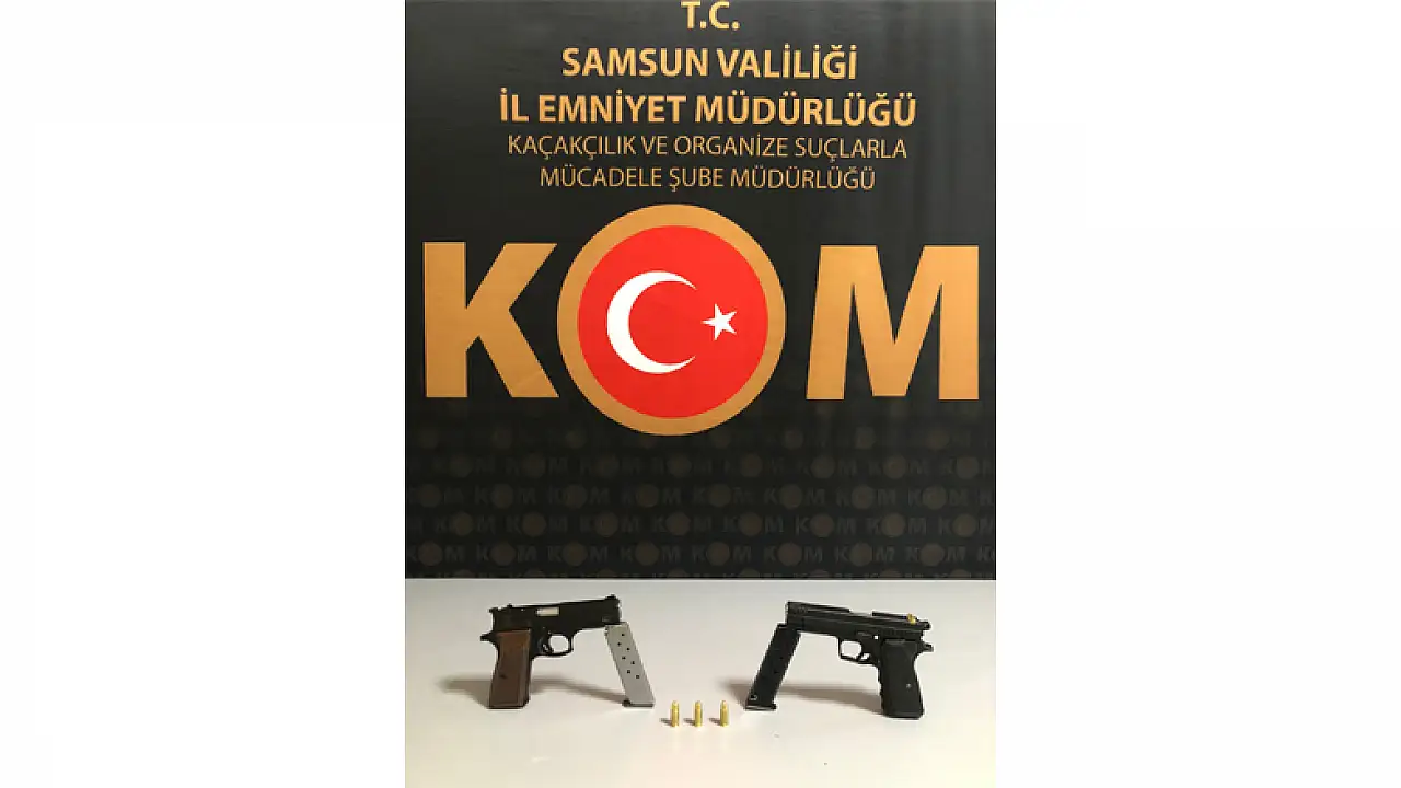 Edinilen bilgiye göre, Samsun Emniyet Müdürlüğü Kaçakçılık ve Organize Suçlarla Mücadele (KOM) Şube Müdürlüğü ekipleri suçlarla mücadele kapsamında yaptıkları takip ve çalışmalar doğrultusunda Tekkeköy ilçesinde durdurulan 55 plakalı araçta arama yaptı. Yapılan aramada 2 adet ruhsatsız tabanca ve bu tabancalara ait şarjör ve 3 adet tabanca mermisi ele geçirdi.