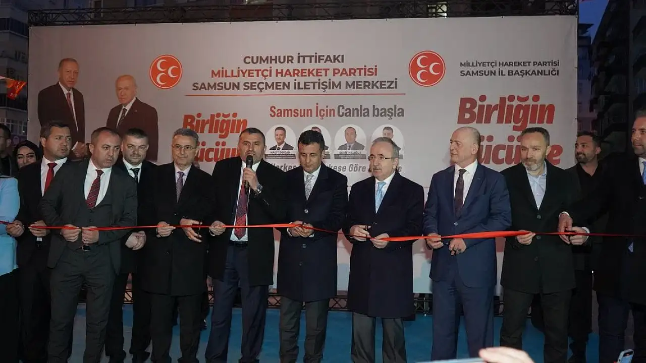 Milliyetçi Hareket Partisi Samsun Seçmen İletişim Merkezi'nin (SİM) açılışında 'Ayırmadan, Ayrışmadan Samsun için Canla Başla' sloganıyla bir araya geldi