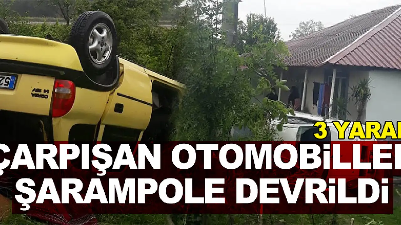 Çarşamba'da çarpışan iki otomobilin yoldan çıkarak bir evin bahçesine devrilmesi sonucu meydana gelen trafik kazasında 3 kişi yaralandı.
