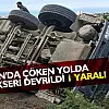 Samsun'da çöken yolda beton mikseri devrildi: 1 yaralı