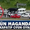 Samsun'da düğün magandaları 3 araçla ters yola girip yolu araç trafiğine kapatırken, konvoyda bulunanlar da araçlardan inip yol ortasında oyun oynadı.