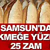 Samsun'da ekmek fiyatına yüzde 25 zam yapıldı. 2 TL'den satılan 200 gram ekmek, yeni tarifeyle birlikte 2,5 TL oldu.