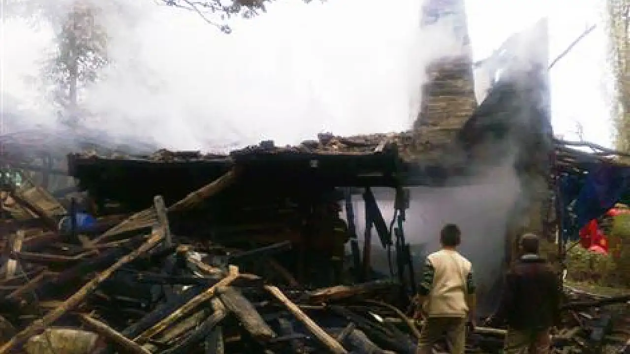 Samsun'un Vezirköprü ilçesinde çıkan yangında 2 katlı ahşap ev tamamen yandı