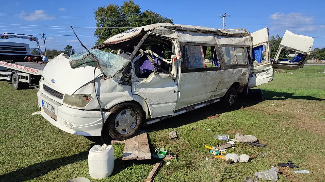 M.M. (17) idaresindeki 63 NE 922 plakalı minibüs, Tahtabahçe Mahallesi'nde devrildi.