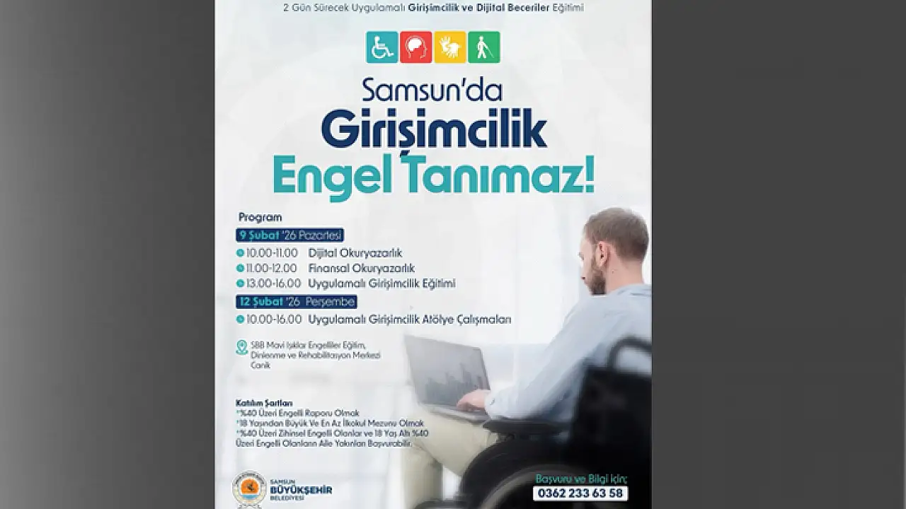 Samsun Büyükşehir Belediyesi, “Girişimcilik Engel Tanımaz” sloganıyla özel bireylere yönelik kapsamlı bir eğitim programı düzenliyor. Program kapsamında dijital okuryazarlık, finansal okuryazarlık, uygulamalı girişimcilik eğitimi ve girişimcilik atölyeleri yer alıyor.