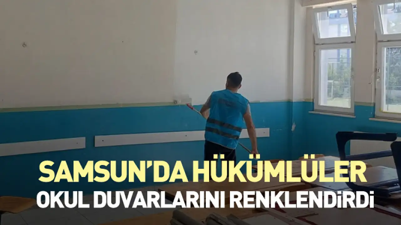 Samsun'un Atakum ilçesinde, 'Emeğimiz Eğitim İçin Projesi' kapsamında boyacılık eğitimi alan hükümlüler, Fatih Sultan Mehmet Ortaokulu'nun sınıf ve koridorlarını boyadı.