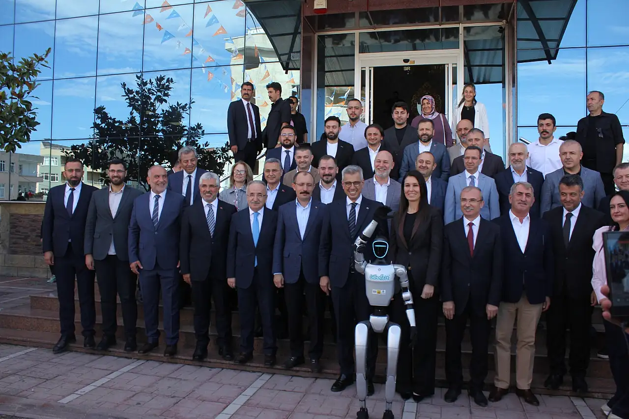 Ayrıca Bakan Memişoğlu ve milletvekilleri, kapıda karşılayan insansı robot “Fastman Canik” ile birlikte fotoğraf karesi verildi.
