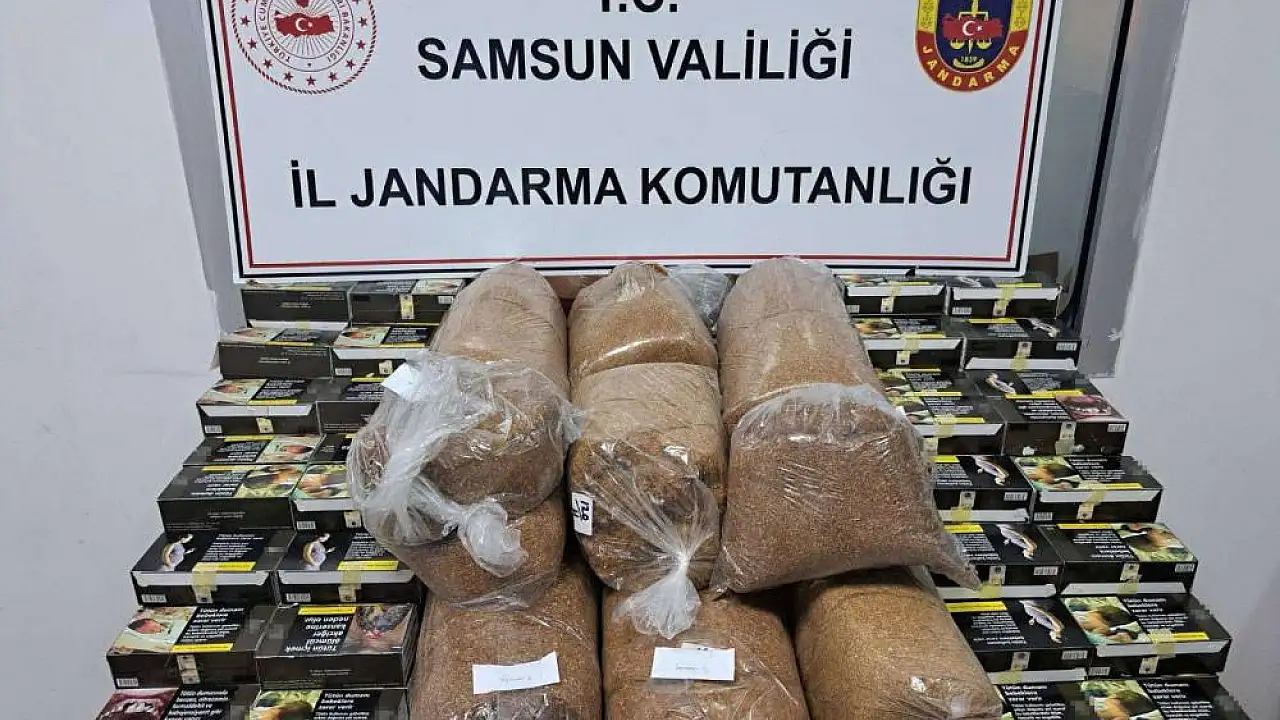Samsun'da jandarma ekipleri tarafından bir iş yerinde yapılan aramada 25 bin 600 adet kaçak makaron ve 54 kilo tütün ele geçirildi.