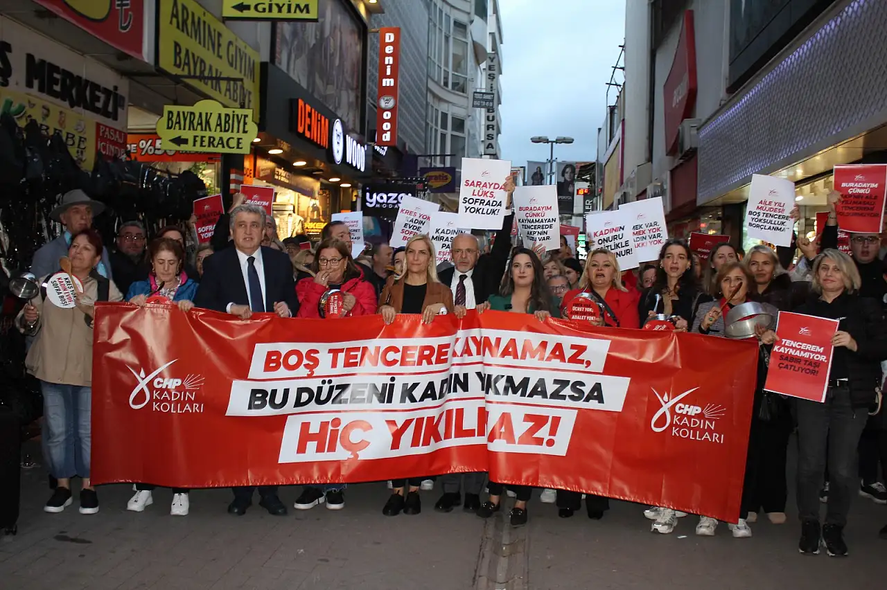 Samsun'da CHP İl Kadın Kolları'nın çağrısıyla düzenlenen yürüyüş gerçekleştirildi. Yürüyüşte kadınlar 'Boş tencere'leriyle yoksulluğa karşı ses yükseltti. Oturma eylemiyle sonlanan etkinlikte 'Eşit ve adil bir Türkiye' talebi ön plana çıktı.