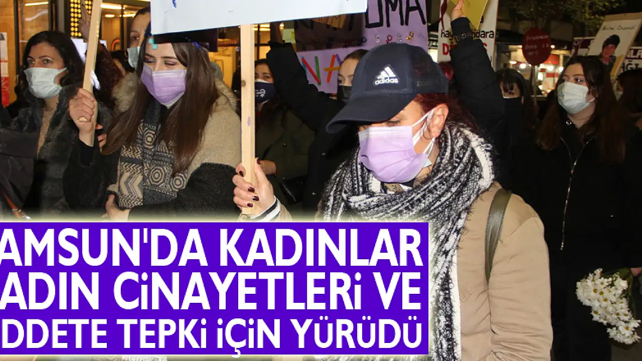 Samsun'da kadınlar, 8 Mart Kadınlar Günü'nde düzenlenen yürüyüşle kadın cinayetlerine ve şiddet olaylarına tepkilerini dile getirdi.