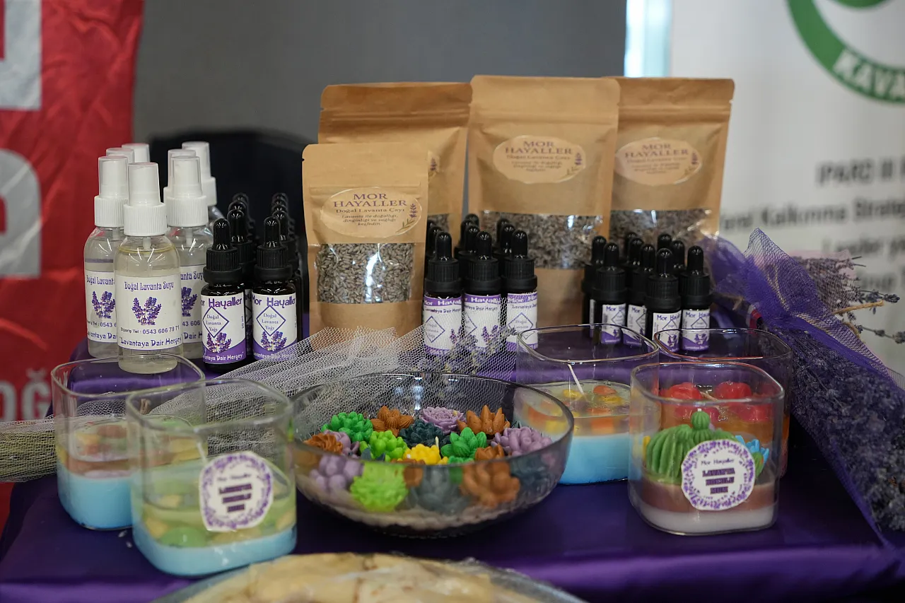 Kavak Kadın Kooperatifi Başkanı Hümeyra Çelik Uyanık, "Kavak'ta şu an 600 dönüm arazide lavanta yetiştiriliyor. Lavanta yağları yine mahallede çıkartılıyor. Bu tür fuarlarda ve çeşitli etkinliklerde pazarlanıyor. Kozmetikte kullanılabiliyor, çay olarak da değerlendirilebiliyor. Özellikle Kavak'ın iklimi Isparta bölgesine benzetildiği için çok verimli şekilde yetiştiriliyor. Şu anda yağı, çiçeği ve tonikleri üretiliyor. Kolonya da üretiliyor" dedi.