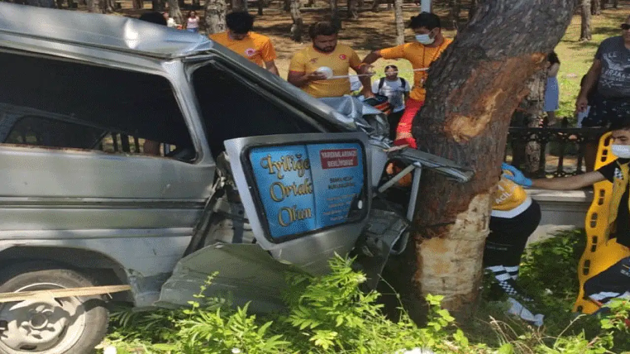 Samsun'da yoldan çıkan kapalı kasa kamyonetin çam ağacına çarpması sonucu meydana gelen trafik kazasında 2 kişi yaralandı.