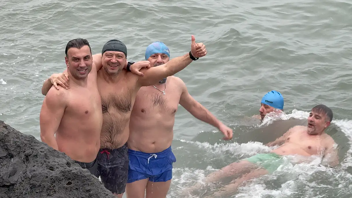 Samsun'da farklı yaş ve meslek gruplarından oluşan yaklaşık 10 kişilik arkadaş grubu, yeni yılın ilk gününde kar yağışı altında Karadeniz'in buz gibi sularına girerek sıra dışı bir başlangıç yaptı.