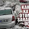 Samsun'da bir aracın sıkıştırması sonucu kardan kayarak yoldan çıkan otomobil tarla kenarına uçtu.