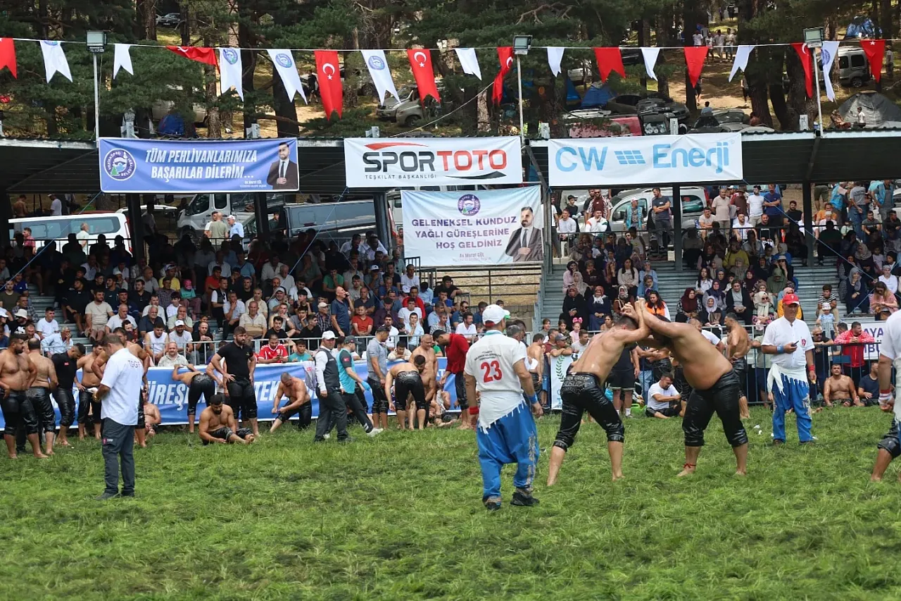 Samsun’un Vezirköprü ilçesinde 08-10 Ağustos 2025 tarihlerinde gerçekleştirilen 19. Kunduz Yağlı Güreşleri’nde 1279 pehlivan er meydanına çıktı. CW Enerji Türkiye Yağlı Güreş Ligi 2025 Sezonu 5. Etabı olan organizasyon, Kunduz Yaylası’nın doğal güzellikleri eşliğinde büyük heyecana sahne oldu. Minik boydan baş boyuna kadar Türkiye’nin dört bir yanından gelen pehlivanlar kıyasıya mücadele etti. Güreşleri izlemek için çevre illerden gelen güreşseverler yaylada çadırlar kurarak müsabakaları takip etti.