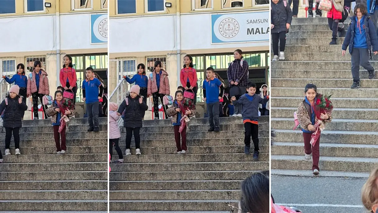 Samsun'un İlkadım ilçesindeki Malazgirt İlkokulu'nda öğrenim gören bir öğrenciye, babası tarafından sınıfına çiçek gönderildi.