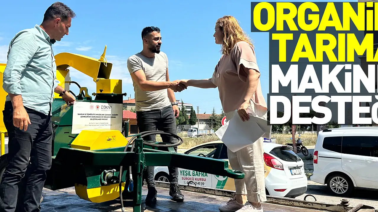 Samsun'da organik tarımı destekleme çalışması çerçevesinde kentin içme suyu ihtiyacını karşılayan havzalarda çiftçi birliklerine 4 adet dal parçalama makinesi teslim edildi
