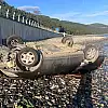 Samsun'un Yakakent ilçesinde, deniz kenarına devrilen otomobilin sürücüsü yaralandı.