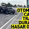 Samsun'da otomobilin çarptığı tramvay durağında hasar oluştu