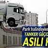 Samsun'da bir akaryakıt istasyonu önünde park halindeki el freni çekilmeyen tanker rampa aşağı hareket ederek alt geçidin üzerinde asılı kaldı, facianın eşiğinden dönüldü.