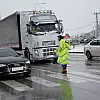 Samsun'da kar yağışı nedeniyle meydana gelen trafik kazalarında polis ekipleri, trafiğin aksamaması için çaba sarf etti.