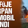 Alevlerin otomobili sardığı anlar ise yoldan geçen bir sürücü tarafından kaydedildi.