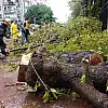 Samsun'da etkili olan sağanak yağış dolayısıyla adliye önündeki bir ağaç kaldırıma devrildi.