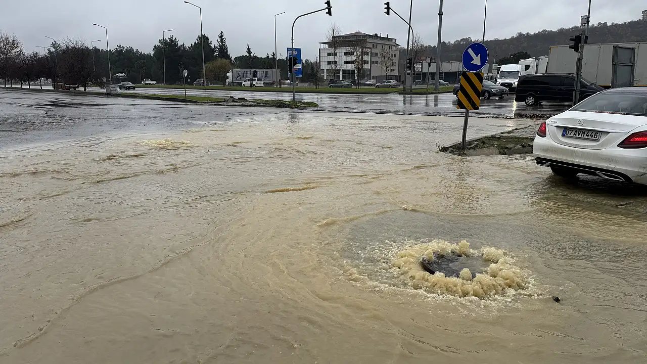 Samsun-Ankara kara yolu Derecik Kavşağı’nda rögarların taşması nedeniyle yolda göllenme oluştu. Su birikintileri, sürücülerin ilerlemesini zorlaştırdı.