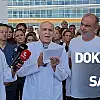 Bir hasta yakınının tartıştığı beyin cerrahı Ömer Özkan'a silah çekmesine tepki gösteren sağlık çalışanları, Bafra Devlet Hastanesi önünde toplandı.