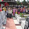 Törenin ardından öğrenciler şehitlerin kabrine çiçek bıraktılar.