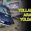 Samsun'da sel: Yollar çöktü, araçlar yolda kaldı