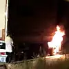 Samsun'da seyir halindeki tırda yangın çıktı