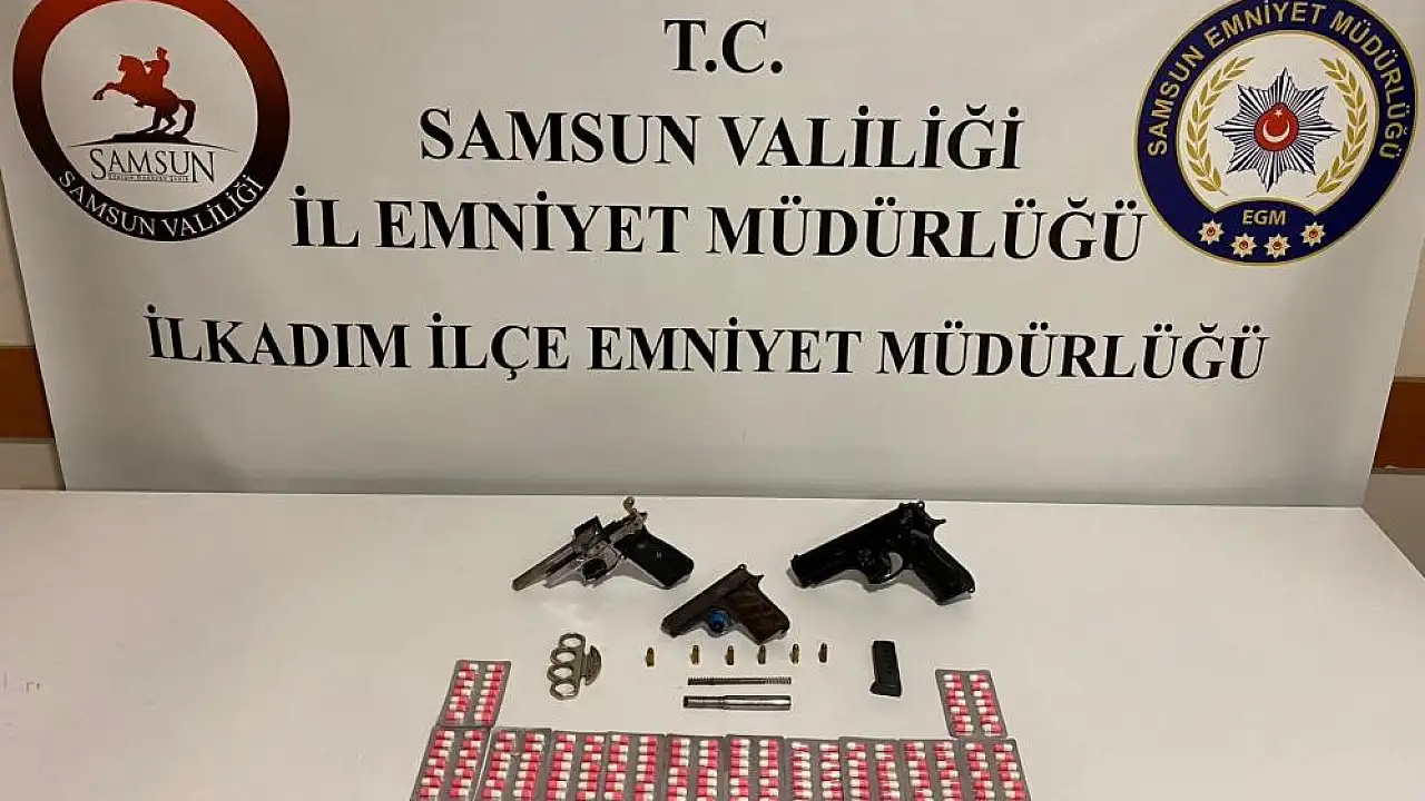 Edinilen bilgiye göre, Samsun Emniyet Müdürlüğü ekipleri İlkadım ilçesinde bir adrese operasyon düzenledi. Yapılan aramalarda; 2 adet ruhsatsız tabanca, 1 adet parçalı halde ruhsatsız tabanca, 5 adet fişek, 1 adet tabanca namlusu, 170 adet sentetik ecza, tek paket halinde 5 gram metamfetamin ve 1 adet muşta ele geçirildi. Olayla ilgili A.G. gözaltına alındı.