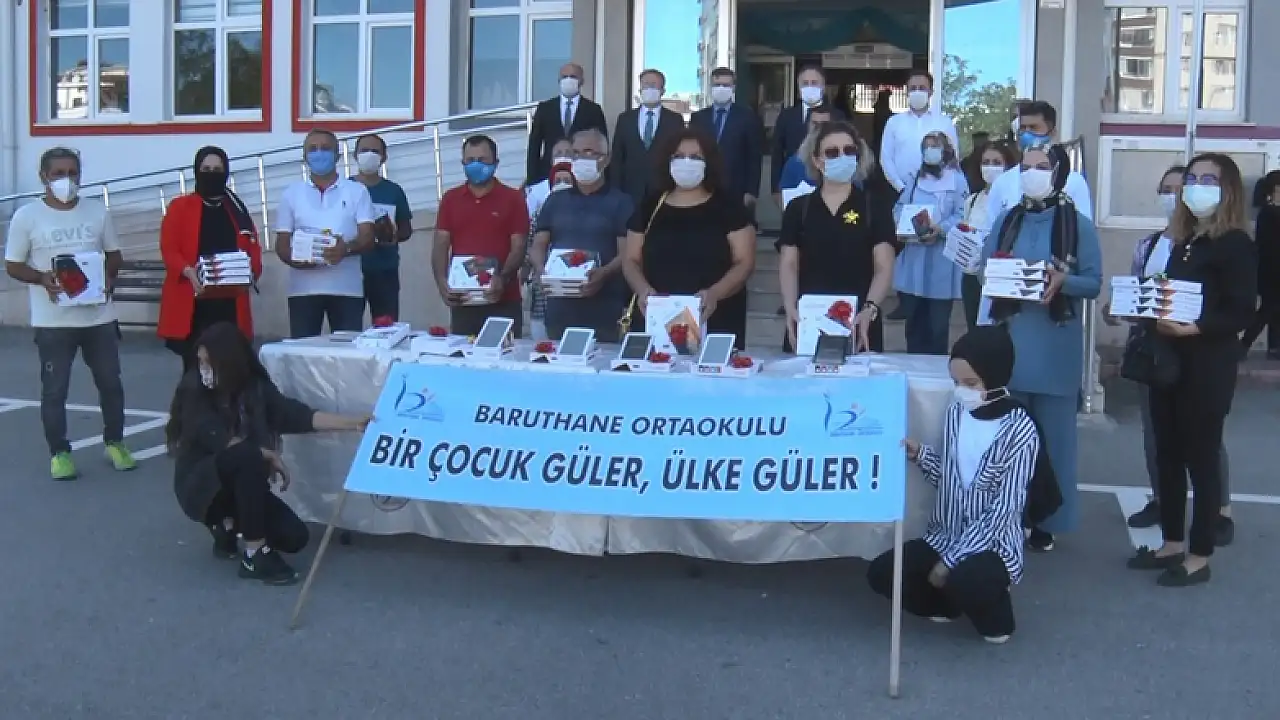 Samsun'un İlkadım ilçesi Baruthane Ortaokulu’nda 981 öğrencinin 69’unun uzaktan eğitim araçlarına sahip olmadığının tespit edilmesi üzerine harekete geçildi. Öğrencilerin uzaktan eğitim sürecine katılabilmeleri için bağışçıların destekleriyle 70 adet tablet alınarak öğretmenlerine teslim edildi. Öğretmenler bugün öğleden sonra tabletleri çocukların evlerine giderek teslim edecek. Okulun öğrencileri yüzde 100 uzaktan eğitim erişimini sağlamış olacak.