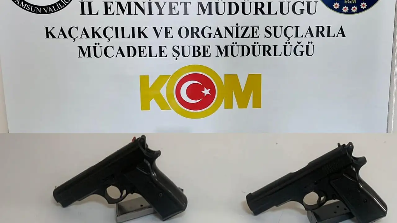 İl Emniyet Müdürlüğü Kaçakçılık ve Organize Suçlarla Mücadele Şube Müdürlüğü ile Havza İlçe Emniyet Müdürlüğü ekipleri, şüphe üzerine durdurulan araçta arama yaptı. Aramada araçta 2 ruhsatsız tabanca bulundu. Olayla ilgili 1 şüpheli gözaltına alınarak, adli işlem başlatıldı.